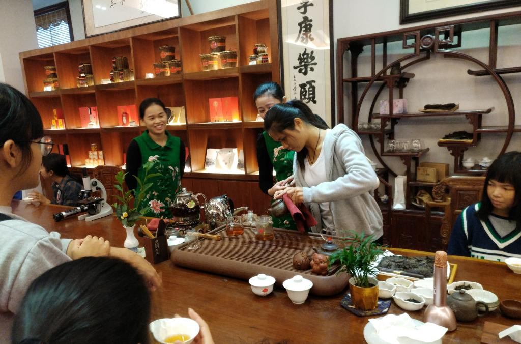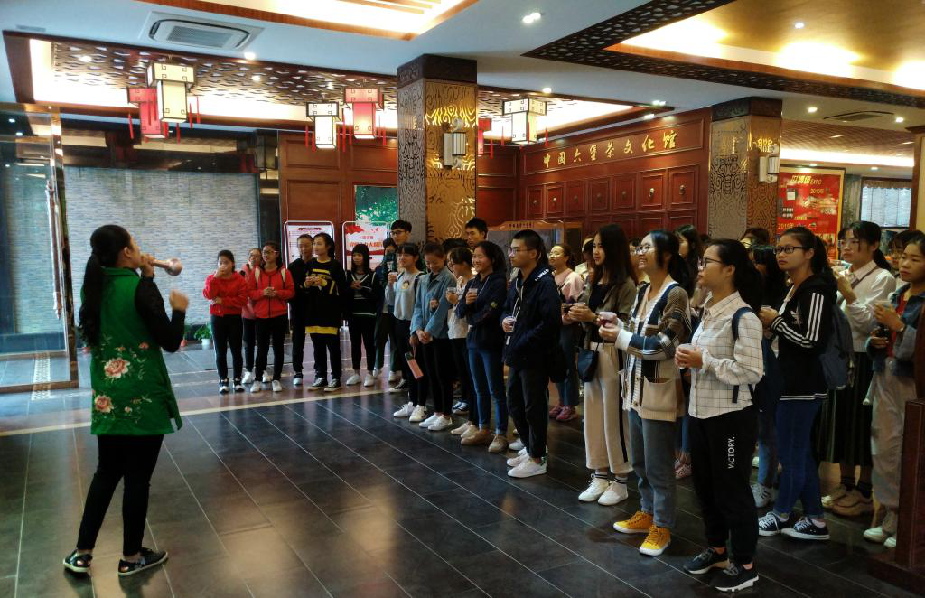 首先公司讲解员向同学们介绍了梧州六堡茶的悠久历史和其所蕴含的丰富文化内涵,接着茶艺师与同学们一起品茶共谈,向同学们展示了六堡茶冲泡品茗的技艺,介绍了泡茶的方法以及品茶的注意事项。随后,在讲解员的带领下参观了该公司的茶叶加工生产车间和茶叶的存储室。