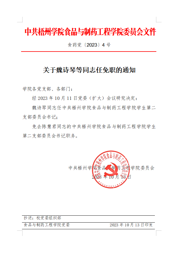 关于魏诗琴等同志任免职的通知