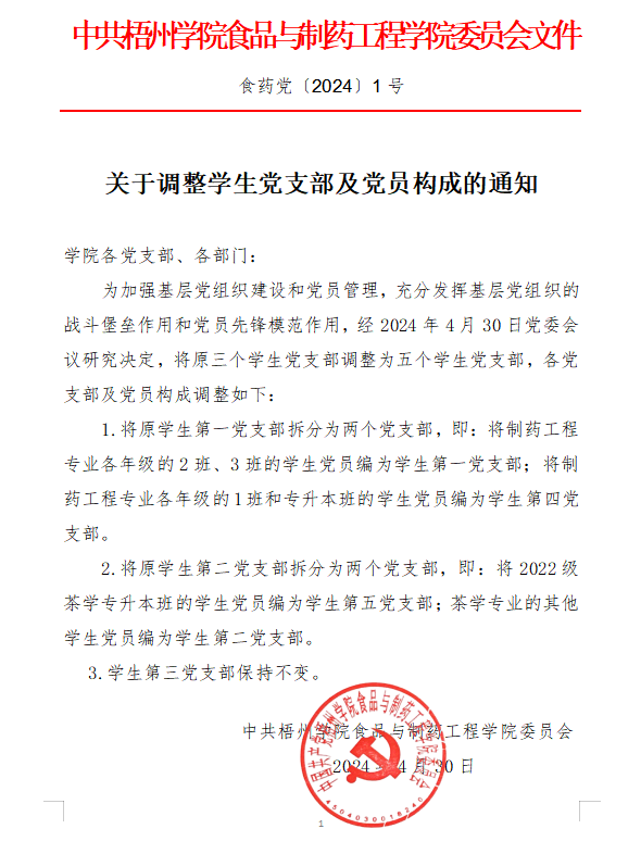 关于调整学生党支部及党员构成的通知