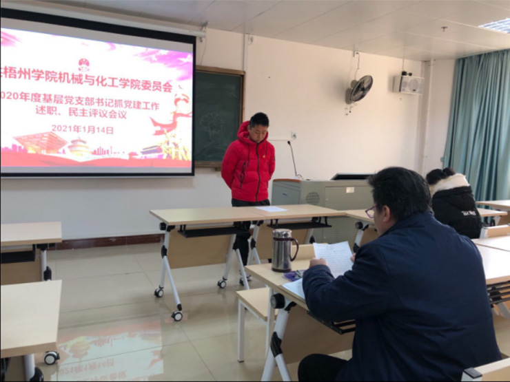 近日,学院党委在科技大楼K305教室组织召开2020年度基层党支部书记落实主体责任述职评议考核会议,学院党委委员、各党支部书记、各支部代表及非中共党员代表参加本次会议,会议由学院党委组织委员卢桂吉同志主持。