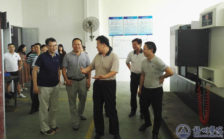 调研小组先后参观了基地的学生实训场所模具研发中心、3D打印研究所、药物提取实验室、林产化工实训室和校企合作企业梧州市鸿源机器设备有限公司,广西安壹化工检测有限公司,樺源水处理有限公司,寄生茶有限公司等企业相关情况。