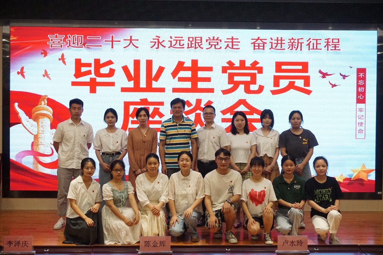 6月22日下午15:00,食品与制药工程学院于明科楼一楼报告厅举行2022年毕业生党员座谈会。学院党委书记陈金辉、党委副书记李泽庆、各学生党支部书记、学院毕业生党员及各支部党员参加本次座谈会。大会由学院学生韦隆翔主持。