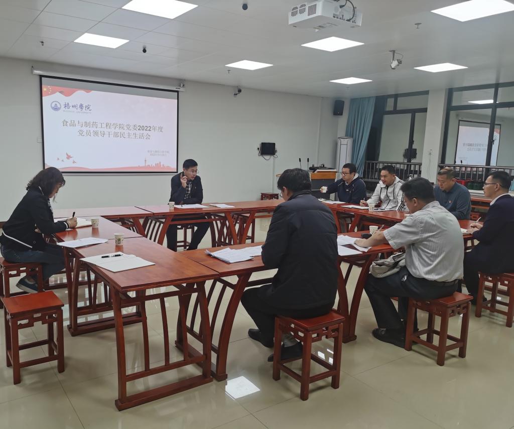根据学校党委的相关工作部署,3月25日下午,食品与制药工程学院党委在K1512召开2022年度党员领导干部民主生活会。学校党委常委、副校长宾月景出席会议。食药学院党委委员和行政班子成员出席了本次会议,会议由该院党委书记陈金辉同志主持。