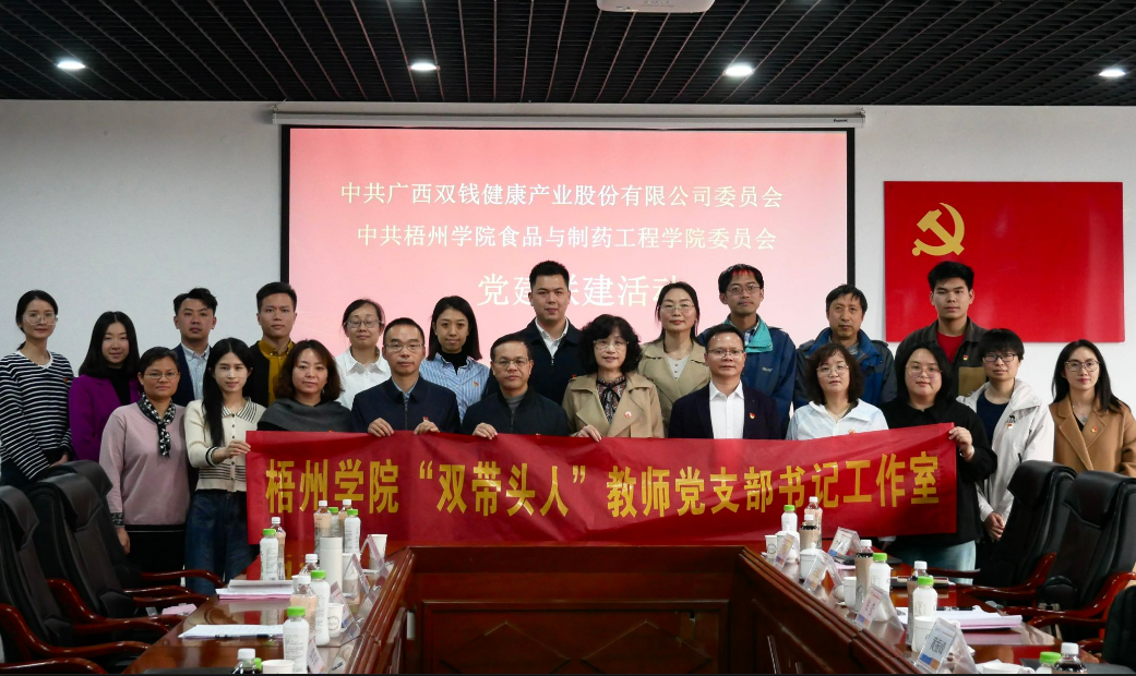2025年3月21日下午,中共广西双钱健康产业股份有限公司委员会一行10人赴食品与制药工程学院开展党建联建活动。食品与制药工程学院院长江成英携领导班子成员、部分教师代表出席了会议,会议由学院党委副书记李泽庆主持。