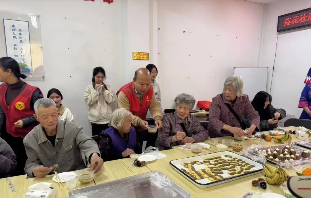 为弘扬中华优秀传统文化,深化民族团结教育,3月21日,我院党委组织师生党员参与梧州市莲花社区"民族团结一家亲,文化润心睦邻里"三月三主题活动。在活动中,我院学生充分发挥其专业特长,创新性地研发了一系列茶点,包括六堡茶蛋糕、千层糕、酸奶及饼干等,巧妙地将梧州非物质文化遗产——六堡茶与传统糕点技艺相融合。社区各族居民欢聚一堂,品茶点、聊家常,在轻松愉快的氛围中感受六堡茶独特魅力,体味茶文化蕴含的民族团结情谊。