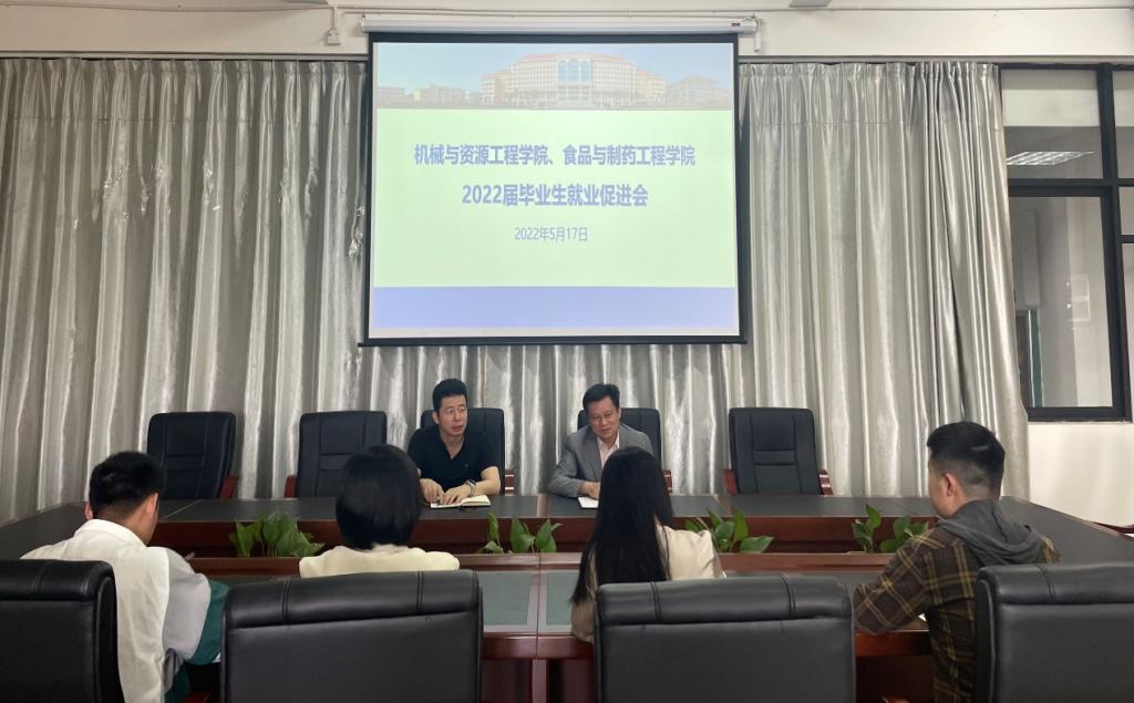 5月17日下午,机资、食药学院召开2022届毕业生就业促进会,机资学院党委书记张立杰、食药学院党委书记陈金辉和全体辅导员参加了会议。