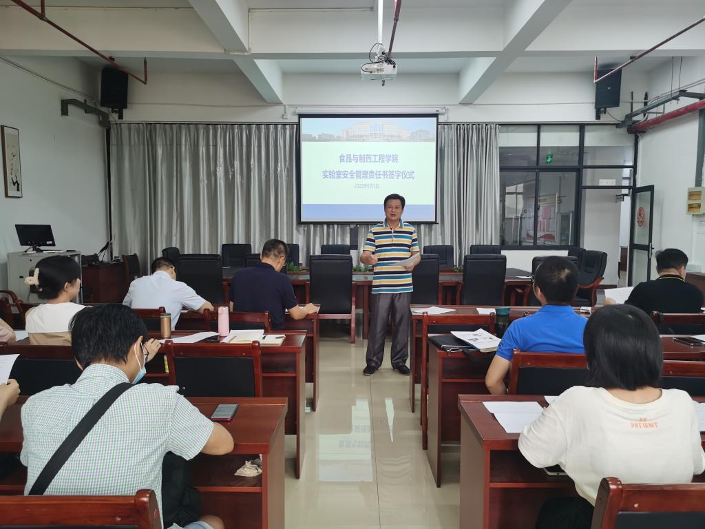 为进一步加强实验室安全管理以及师德师风建设,落实安全责任,以及清廉学院建设目标,提高教师安全意识与思想道德水平,6月1日,食品与制药工程学院在明科楼K1303室组织全体教师签订《实验室安全实验责任书》和《师德师风承诺书》。