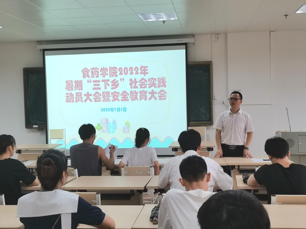 7月5日下午,我院在科技楼K407召开食药学院2022年暑期“三下乡”社会实践动员大会暨安全教育大会。食药学院党委副书记李泽庆,食药学院团委副书记蒋小兰,全体三下乡志愿者,共28人参加此次大会。