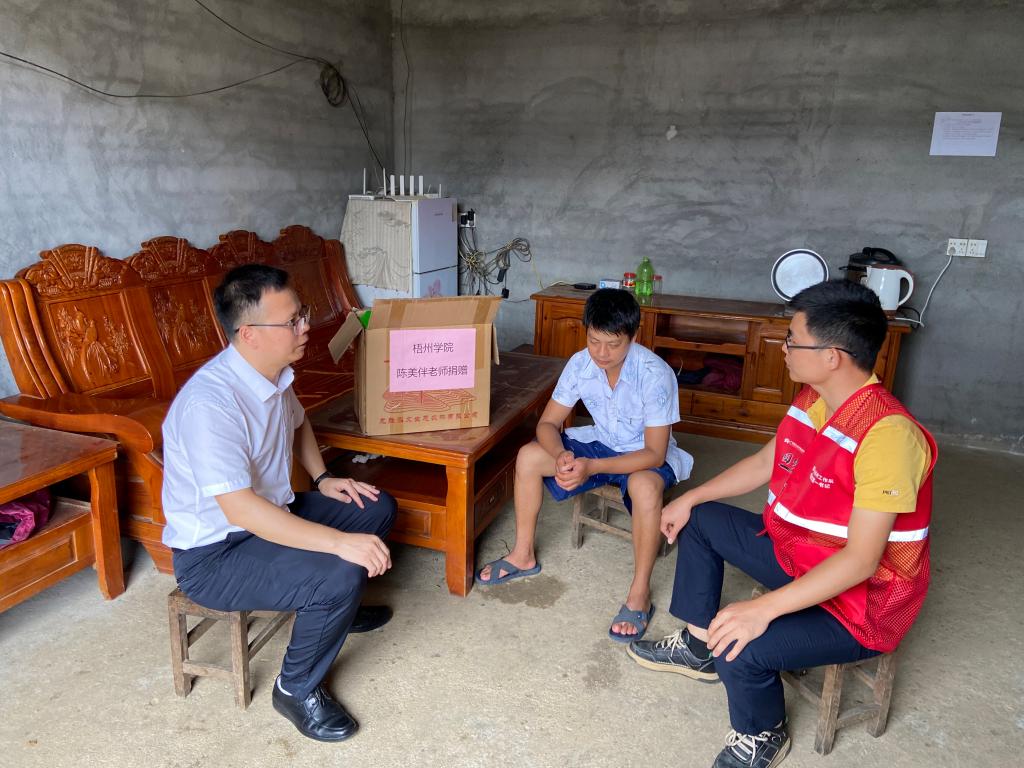 慰问期间,李泽庆向李永成转交了由食药学院陈美伴老师捐赠价值350元的米油等慰问品。此外,学院还为李永成购买鸡苗发展养殖业捐款471元。