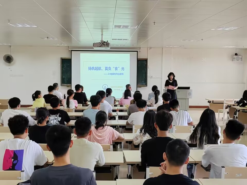 为帮助新生更好地适应大学生活,提前了解专业发展前沿,增强专业认知,食品科学与工程教研室于9月17日在明科楼K307室举办新生入学专业教育交流会。本次交流会邀请到了食品与制药工程学院副院长江成英、广西梧州乐哈哈食品工业有限公司董事长莫显科进行主题教育与专题讲座,教研室全体教师及2023级食品科学与工程专业全体学生参会。