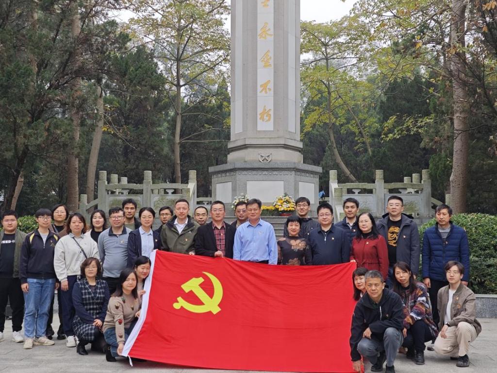 随后,陈金辉书记为大家上了一堂生动的党课。陈金辉书记讲述了郭金水、廖梦樵、黄士韬、李素秋等梧州革命志士的英雄事迹,强调要珍惜来之不易的幸福生活,继承先烈遗志,把对革命先烈的缅怀与信仰,转化成为推动高质量发展的强大动力,为实现中华民族伟大复兴,创造出无愧于先烈、无愧于时代、无愧于人民的业绩。接着,全体党员同志依次上前敬献鲜花,并环绕一周,参观瞻仰革命烈士纪念碑。