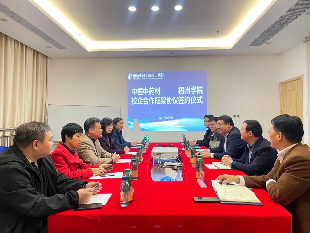 1月9日上午,食品与制药工程学院与广西中恒中药材产业发展有限公司在中药材公司签订教学科研实习基地协议和授牌活动。食药学院党委书记陈金辉、院长江成英,中恒中药材公司党支部书记、总经理胡冰等参加了活动。
