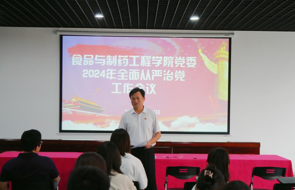 4月24日下午,食品与制药工程学院党委在北区实训楼N205召开全面从严治党工作会。会议由学院党委书记陈金辉主持,该院全体师生党员参加。