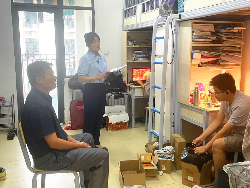 在宿舍内,陈金辉书记与毕业生进行了亲切的交流,询问了他们的就业意愿、就业困难和期望。毕业生们也表达了对就业方面的困惑和期许。
