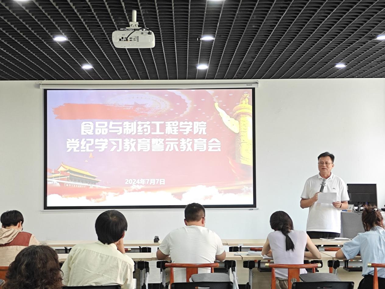 7月7日下午,食品与制药工程学院在北区实训楼N205召开了党纪学习教育警示教育会,会议由学院党委书记陈金辉主持,全体教职工参会。
