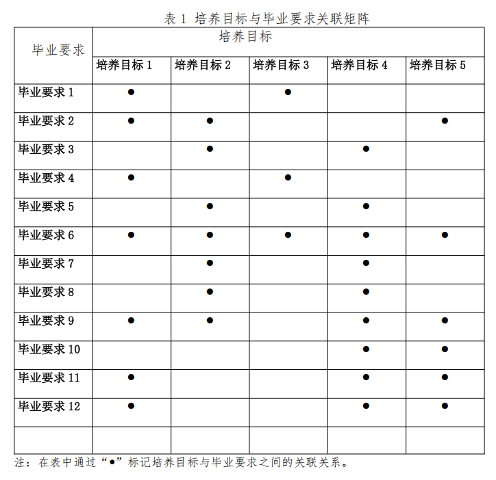 12.对终身学习有正确认识,具有不断学习和适应发展的能力。专业人才培养目标与毕业要求之间的映射关系如表 1 所示。