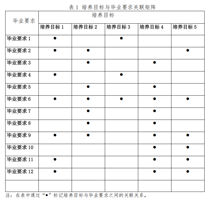 专业人才培养目标与毕业要求之间的映射关系如表 1 所示。