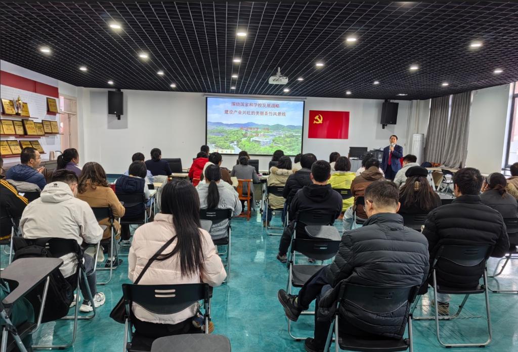 2025年1月12日上午,浙江农林大学方伟教授莅临梧州学院食品与制药工程学院开展题为《围绕国家和学校发展战略 建设产业兴旺的美丽茶竹风景线》的专题讲座,食品与制药工程学院全体教职工参会。
