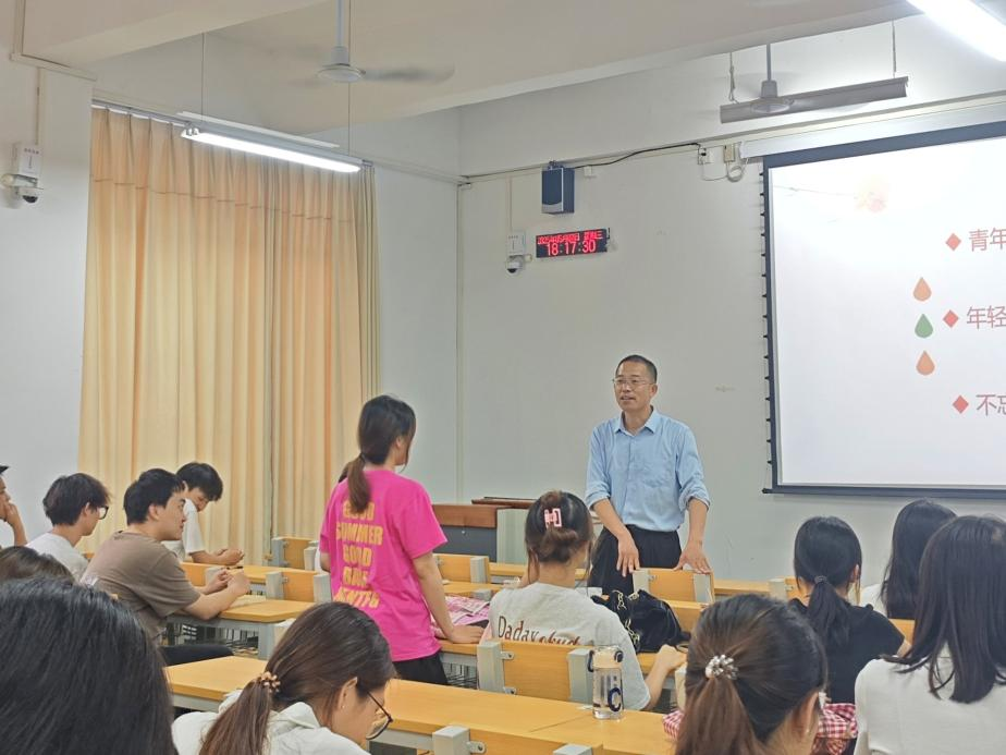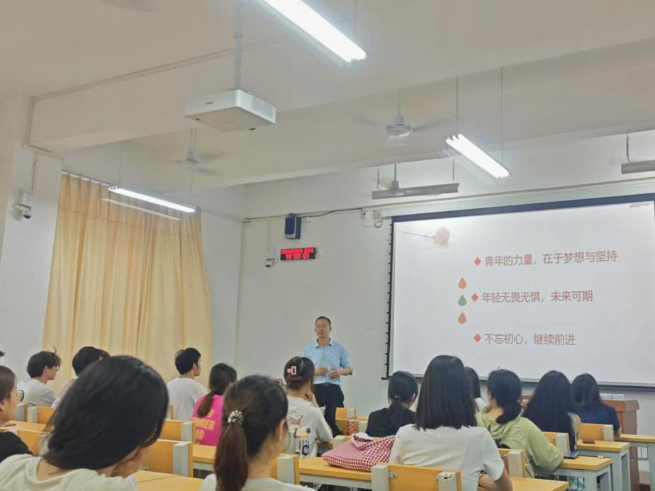 2025年5月7日下午,食品与制药工程学院22级茶学班在北区教学楼S202成功举办"五四精神,奋勇前进"主题交流研讨活动。本次活动特邀梧州学院校长助理黎健龙担任主讲嘉宾,班主任冯美燕老师主持研讨,班级全体学生参与交流。