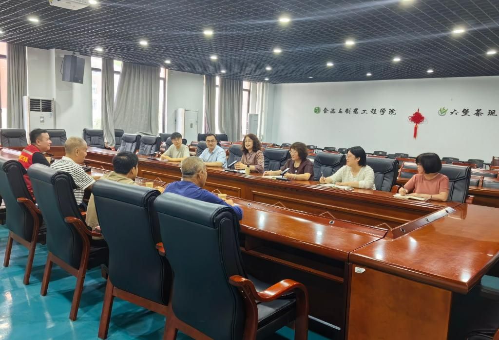 2026年3月27日,蒙山县文圩镇木护村驻村第一书记蔡林峰带领村“两委”干部、村企业负责人代表一行4人到食品与制药工程学院,就乡村振兴、产业升级等议题展开合作洽谈。学院院长江成英、党委副书记黎国华、副院长朴春红,以及各教研室主任和教师代表共同出席了此次座谈会。