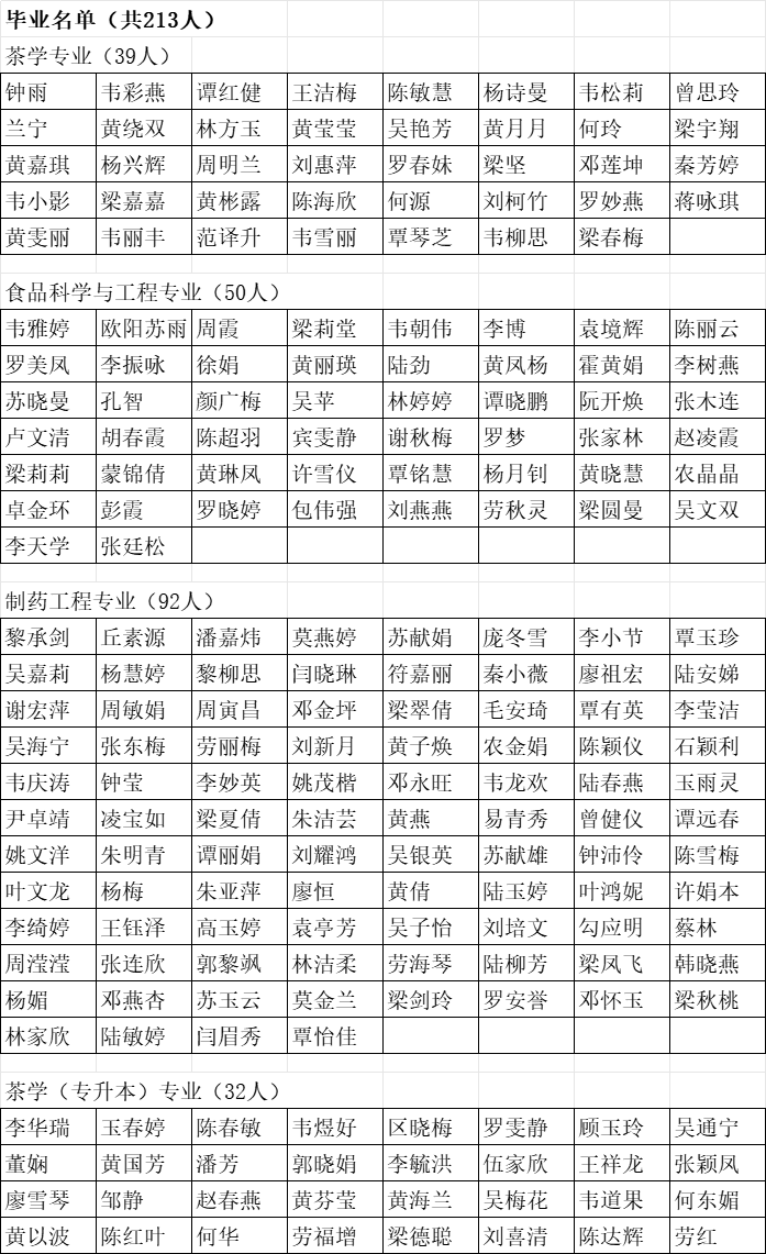 根据《梧州学院学生管理规定》等相关规定,以及毕业生提交的延期毕业申请等情况,学院对每位毕业生逐一核查,2024年5月20日经学院审议,现将2024届毕业生毕业资格审核结果公示如下,公示期为2024年5月20日至5月24日共五天。如有异议,可在公示期内以书面形式署真实姓名向食品与制药工程学院党政办公室反映。