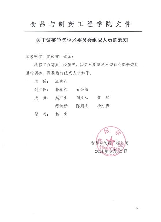 根据工作需要,经研究,决定对学院学术委员会部分委员进行调整。调整后的组成人员如下: