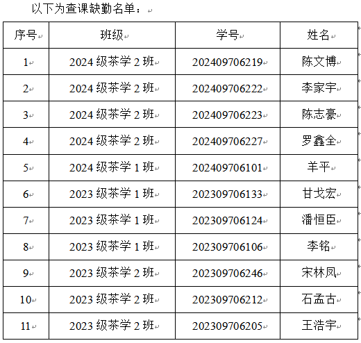 为强化学风建设,提升教学质量,增强学生学习自觉性,培养自我管理能力,经辅导员进课堂抽查及汇总《班级周情况报告表》,现将2024-2025第二学期第9、10周无故缺课学生进行全院通报批评(详见附件)。无故再犯者,将按《梧州学院学生违纪处分规定》第三十七条严肃处理。