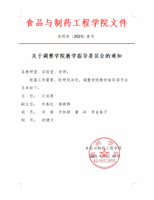 关于调整学院教学指导委员会的通知