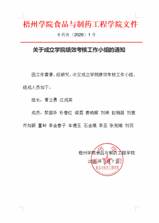 关于成立学院绩效考核工作小组的通知