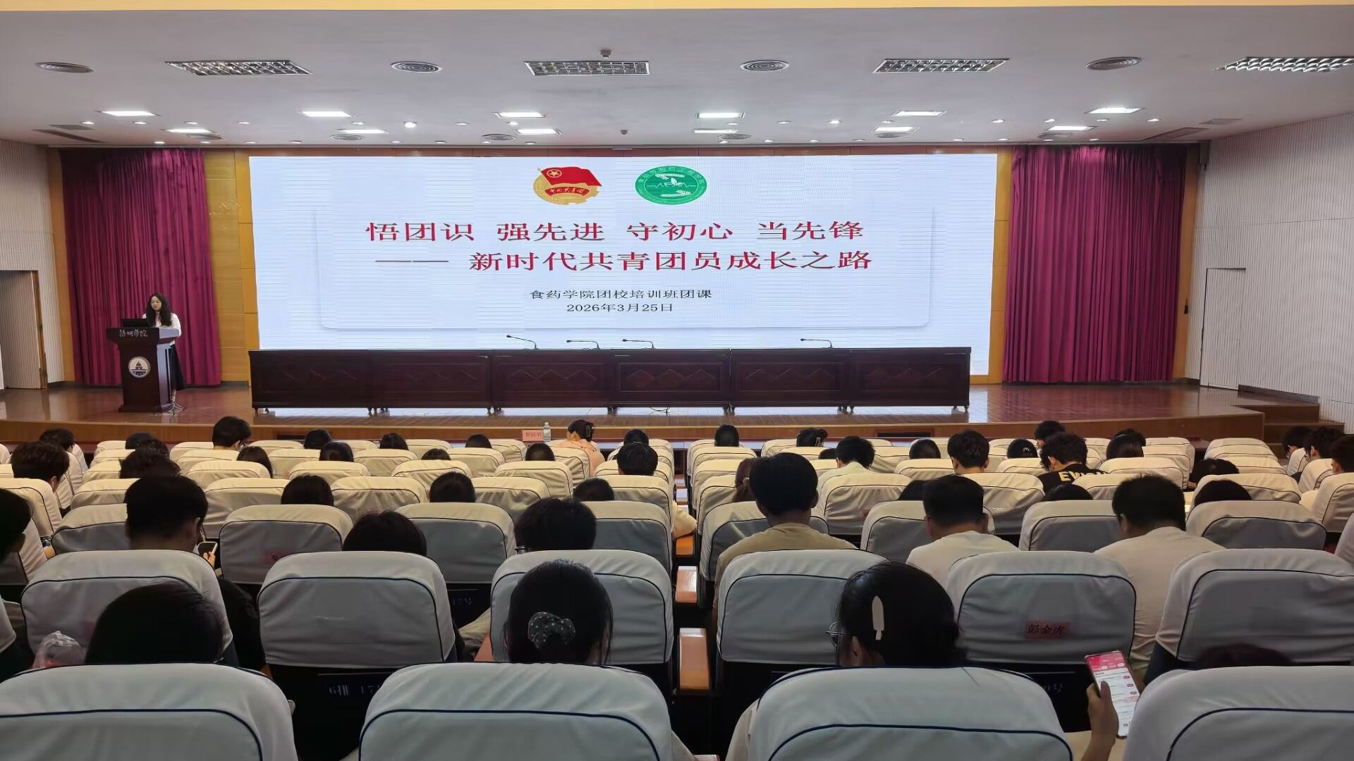 3月26日晚,食品与制药工程学院在明理楼学术报告厅举行第八期团校培训班结业仪式。学院党委副书记黎国华、团委书记赵婉斐及全体学员参加活动。