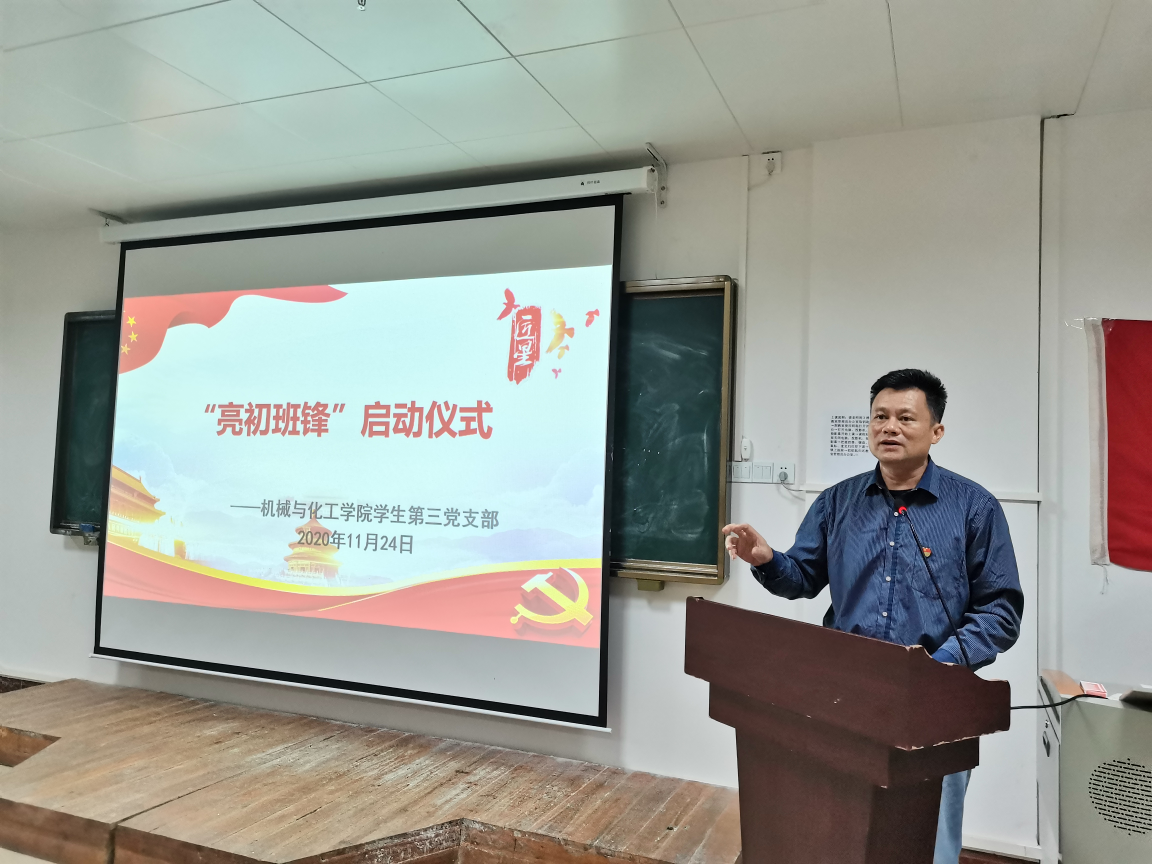 为加强党性建设,将学院“机化匠星”品牌的活动理念落实到基层,学院学生第三党支部于2020年11月24日下午召开“亮初班锋”品牌活动的启动仪式暨动员大会。参加启动仪式的有学院党委书记陈金辉、党委副书记许玉婷、辅导员代表及全体支部党员。