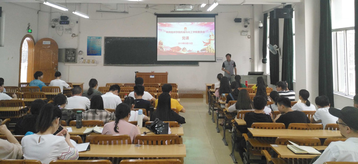 5月15日,学院党委在明理楼南楼205教室集体上第二季度党课。全体师生党员参加党课学习。学院党委书记陈金辉同志作题为《弘扬湘江战役革命精神,走好新时代机化学院的长征路》专题讲座。