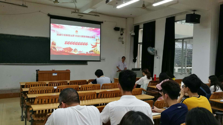 5月15日,学院教师党支部在明理楼南楼205教室召开支部“党建引领基层治理 夯实扫黑除恶群众基础”为主题活动。全体教师党支部、学生第一、第二、第三党支部党员参加学习活动。